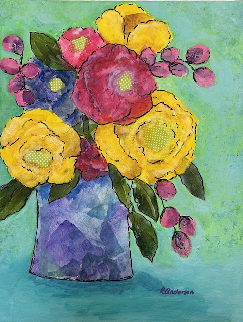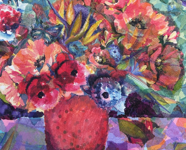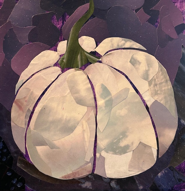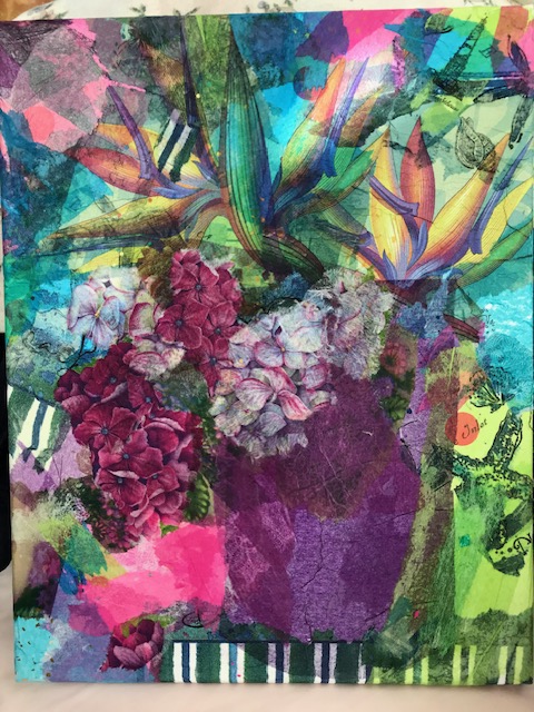 Collage completed with Gabrielle StraussAt workshop number two with Gabrielle Strauss, I completed this one. Sold it last year. ‘Ghost pumpkin’ Collage on canvas 20cm X 20cm‘Poinsettia Power’ Collage, (Mixed media), on canvas 41cm X 51cmMixed media on canvas. Sold‘Fresh from the garden’ Mixed media Sold